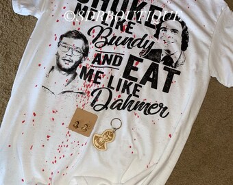 Amazon Com Choke Me Like Bundy Eat Me Like Dahmer Ted Bundy Jeffrey Dahmer Serial Killer Halloween Blood Horror Bleached Shirt S Handmade Products